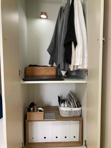 もう何か月も前になりますが、クローゼットを改造しました。 改造前はこんな感じでIKEAの吊り下げ収納ラッスラをぶら下げておりましたが 使わない時も多く 使っていないにも関わらず 圧迫感はいっちょ前でした。